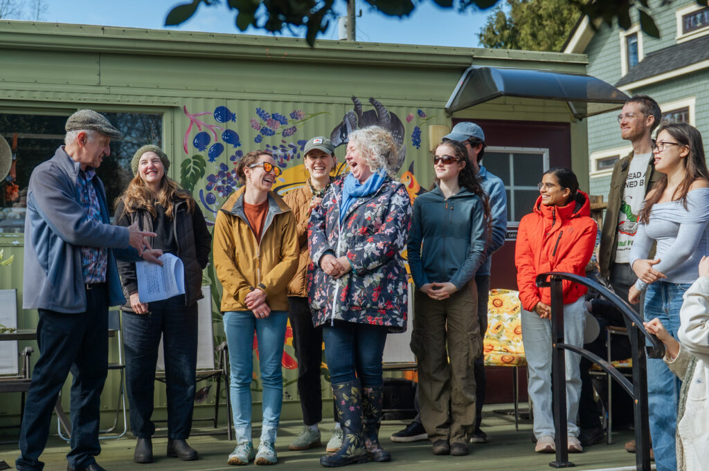 City Farmer now receives thousands of visitors from around the world eager to see how urban land can be managed in a productive and environmentally sustainable manner. As a living classroom, it features a variety of compost systems, a cob shed with a green roof, and cultivated beds of vegetables, herbs, fruit, and pollinator-friendly perennials. In warmer months, visitors may observe local wildlife, feed mulberry leaves to silkworms, and harvest hops used in beer making.