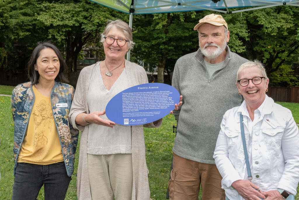 This once densely forested area of the səlilwətaɬ, xʷməθkʷəy Sḵwxwú7mesh peoples was felled to supply the Burrard Inlet sawmills and the colonial lumber trade. Resource extraction gave way to the subdivisions and roads of the property developers attracted by Westminster and Vancouver Tramway company’s service to New Westminster along Park Drive (Commercial). Block 146 between 6th and 3rd Avenues and Victoria Drive was subdivided in 1894 and William Bauer named the new streets Electric, Tram and Railway. In 1911, when the diagonal right of way across the subdivision was activated by the BC Electric Railway for their Burnaby Lake Interurban line, they were renamed as 4th, McSpadden and 5th Avenues. Service ended in 1953 providing the